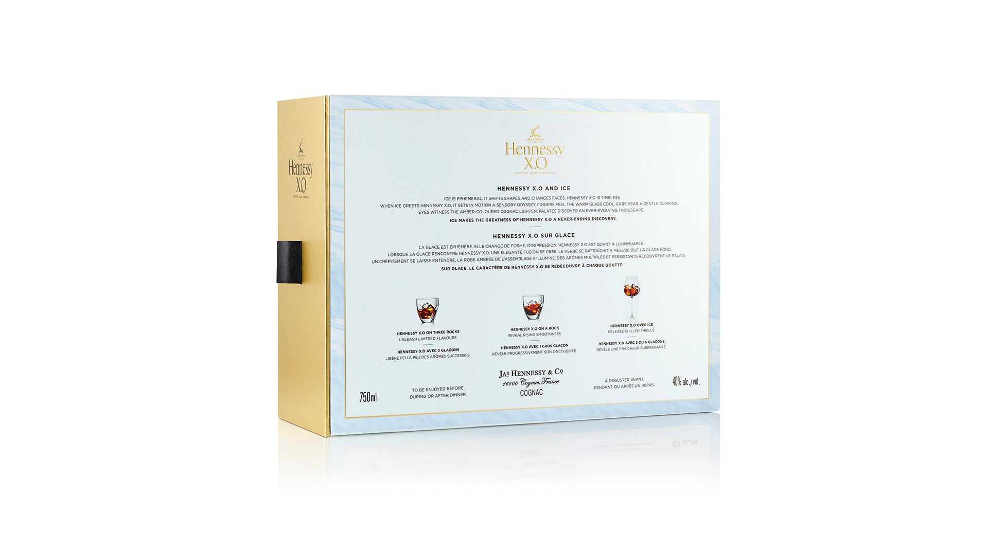 To celebrate the 2020 end of year, his X.O festive offer (with a new special packaging with a second life of ice bucket, a customized X.O bottle, a tongs to accompany the ice bucket and a brochure) promotes the X.O & Ice programme by encouraging different ways of drinking around Hennessy X.O. Each and every drop of X.O is part of a story that has continued for more than 140 years. Explore this blend’s intensity and tremendous length with this half bottle. An icon of Hennessy, X.O has remained unchanged since its creation. Around 100 of the finest eaux-de-vie are carefully selected and aged to create this sophisticated blend.